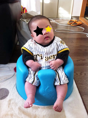 バンボ(頂いたお祝いで購入しましたの)に乗せてみたらスッポリ。